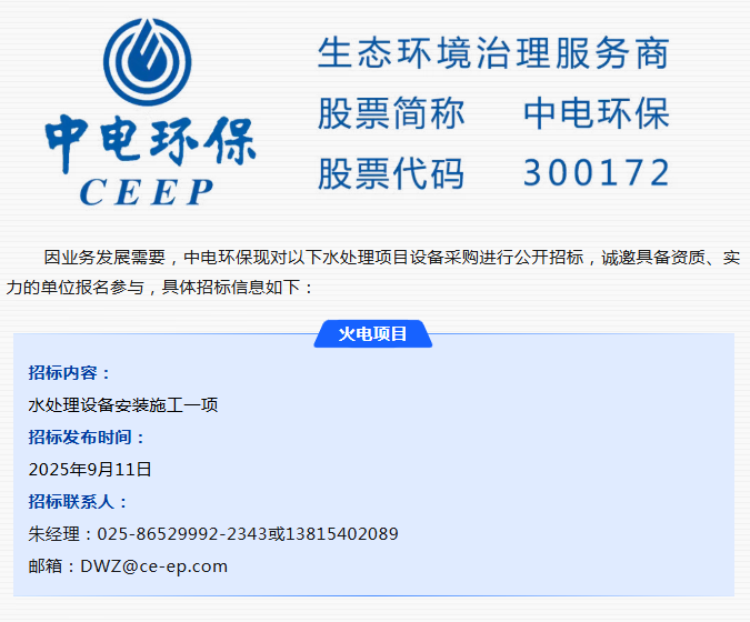 中電環(huán)保股份有限公司是南京市首家環(huán)保上市公司(股票簡稱:中電環(huán)保,股票代碼:300172),南京環(huán)保產(chǎn)業(yè)協(xié)會會長單位,國家級聯(lián)盟理事長單位,是生態(tài)環(huán)境治理服務商,主營(3+1):水務、固危廢、煙氣治理及產(chǎn)業(yè)創(chuàng)新平臺,包括:工業(yè)水處理、污水處理及水環(huán)境綜合治理;固危廢土壤、污泥餐廚垃圾處理;煙氣及VOCS治理;智慧環(huán)保;高端裝備等。